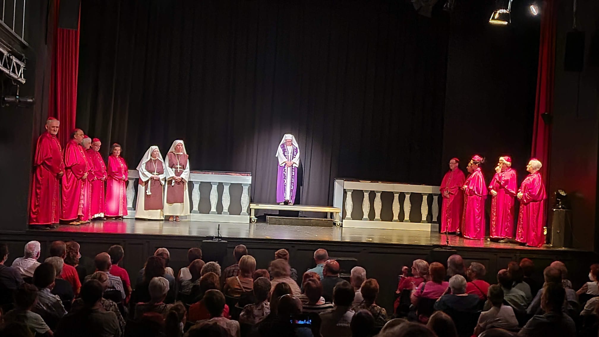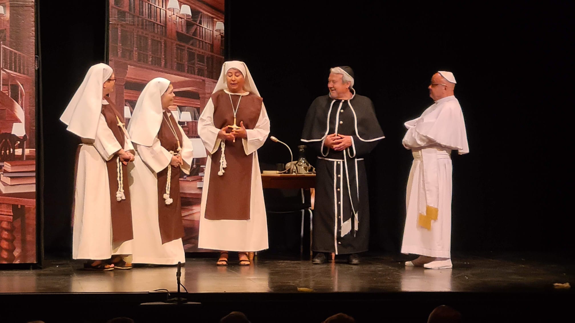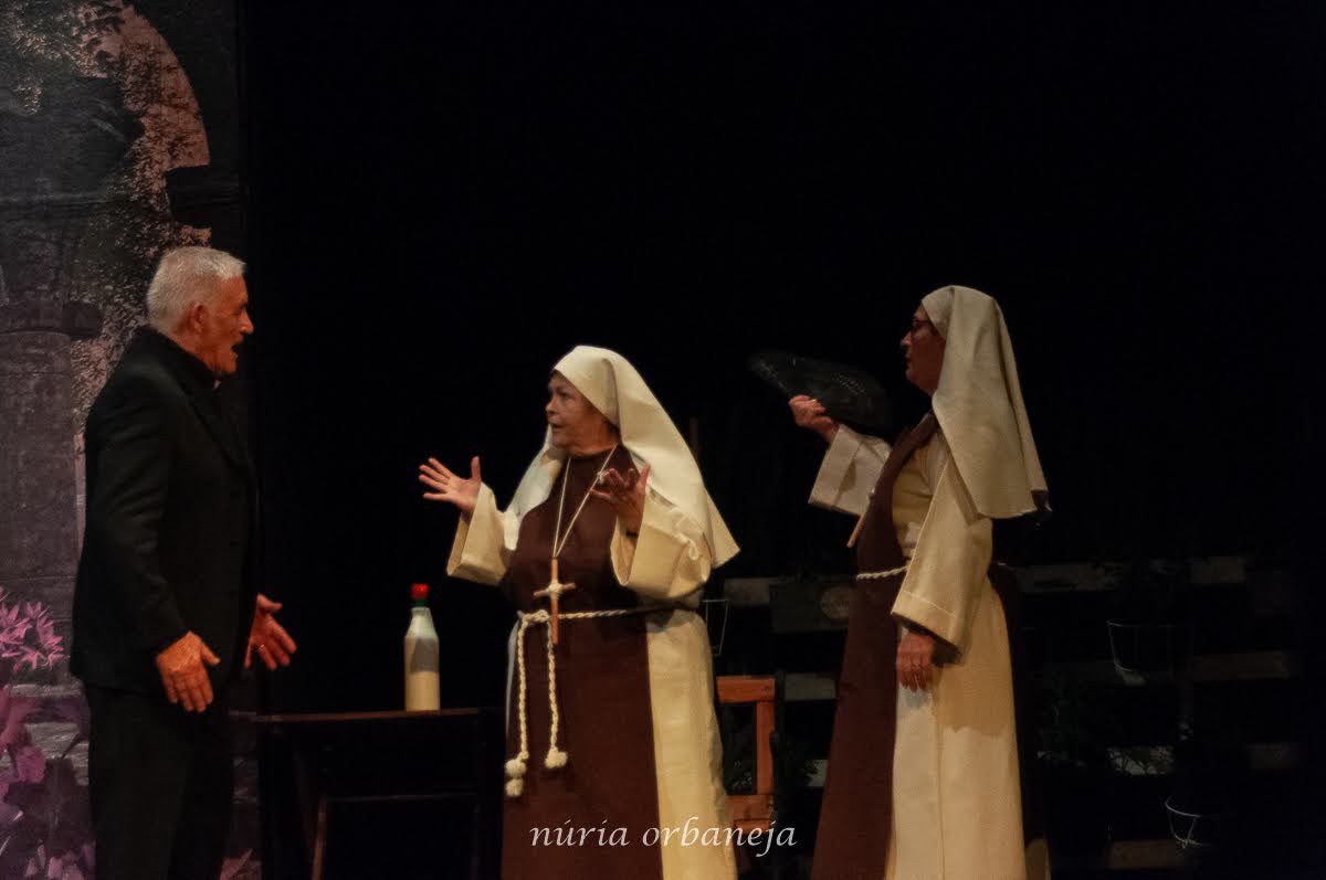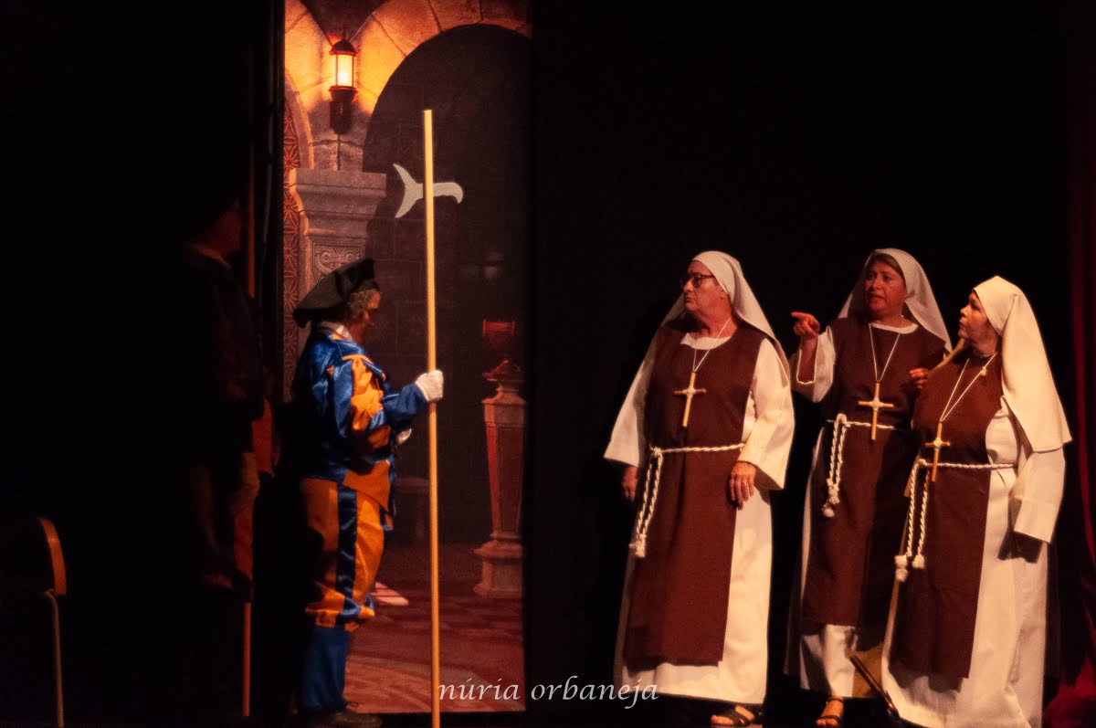 Ellas son el milagro fue la decimocuarta obra de Eclipse Teatro y se estrenó en 2022 en el Ateneu Popular Nou Barris i en el Espai 3 Ulls – IE Trinitat Nova. Desde La Buena Suerte, cuando celebramos el 10º aniversario del grupo 2018, no habíamos vuelto a estrenar una obra como tal. Entre una cosa y otra, y después la pandemia, Eclipse estuvo lantente durante 3-4 años. Pero eso había acabado y había llegado la hora de superar todas las adversidades y volver al escenario con la que fue la primera obra escrita por nosotros mismos. Nos pareció una genial oportunidad poder escribir una continuación a la obra de Jean-Pierre Martínez Milagro en el Convento de Santa María Juana, que estrenamos en el mismo teatro el año 2017. Una vez más, un gran trabajo de creación y escenificación, así como de vestuario y decorado. ¡Esperamos que os guste!