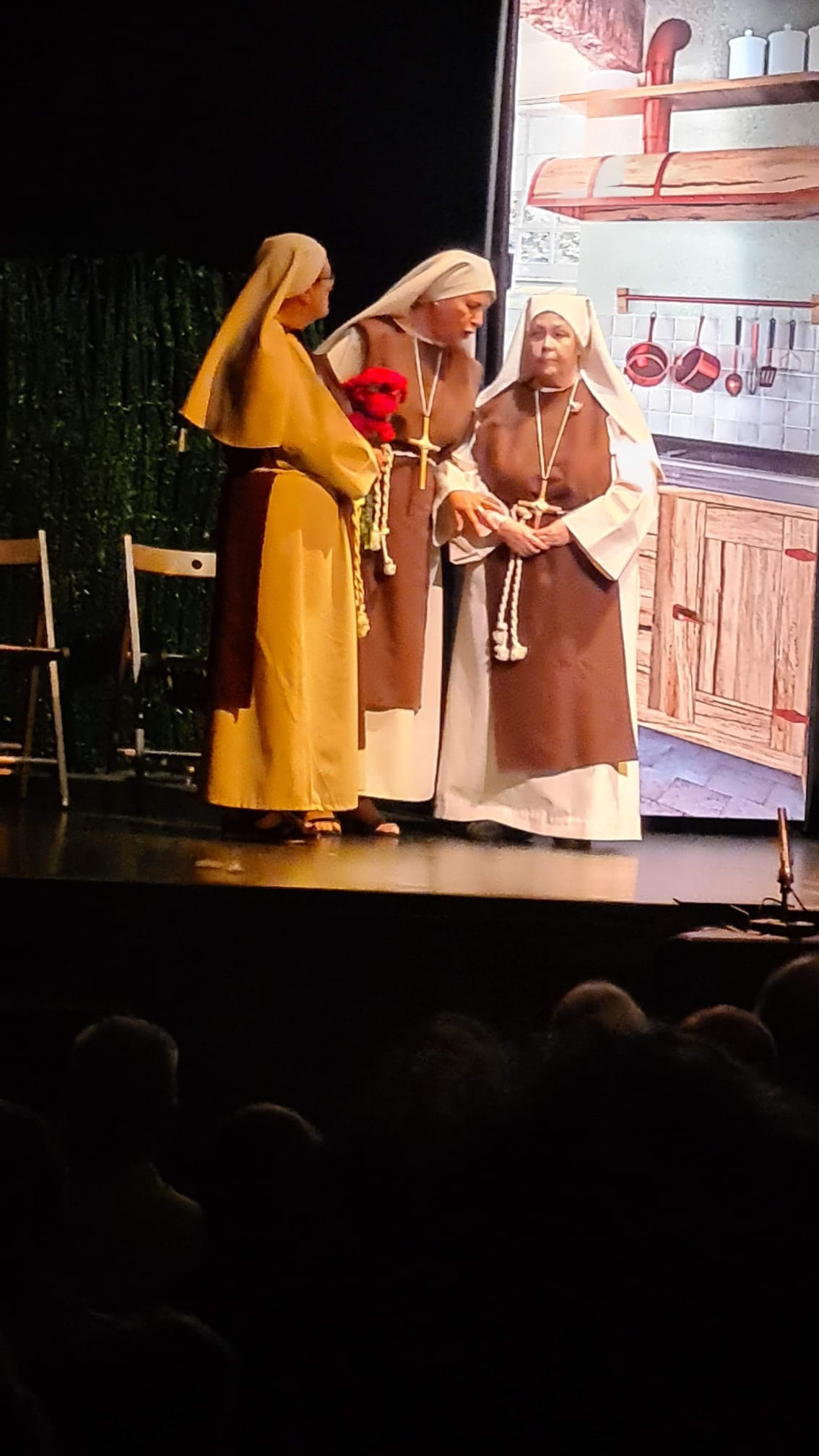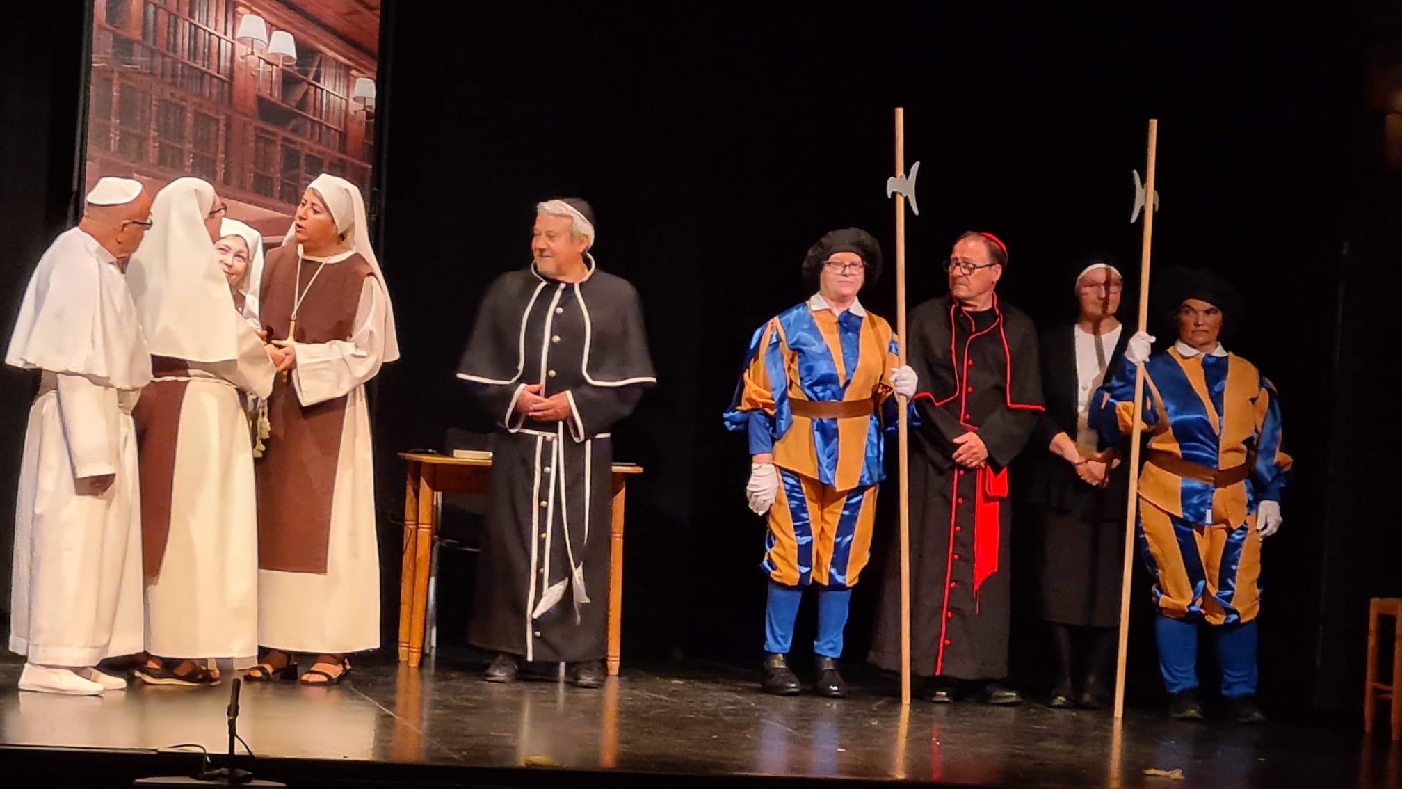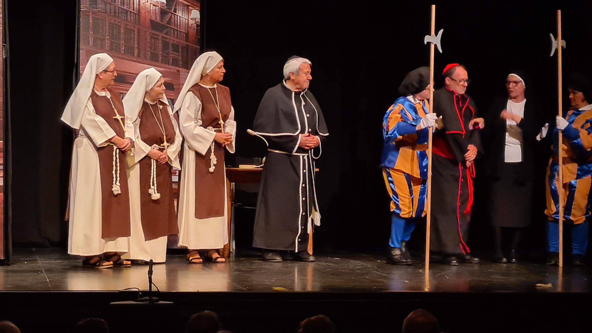 Ellas son el milagro fue la decimocuarta obra de Eclipse Teatro y se estrenó en 2022 en el Ateneu Popular Nou Barris i en el Espai 3 Ulls – IE Trinitat Nova. Desde La Buena Suerte, cuando celebramos el 10º aniversario del grupo 2018, no habíamos vuelto a estrenar una obra como tal. Entre una cosa y otra, y después la pandemia, Eclipse estuvo lantente durante 3-4 años. Pero eso había acabado y había llegado la hora de superar todas las adversidades y volver al escenario con la que fue la primera obra escrita por nosotros mismos. Nos pareció una genial oportunidad poder escribir una continuación a la obra de Jean-Pierre Martínez Milagro en el Convento de Santa María Juana, que estrenamos en el mismo teatro el año 2017. Una vez más, un gran trabajo de creación y escenificación, así como de vestuario y decorado. ¡Esperamos que os guste!
