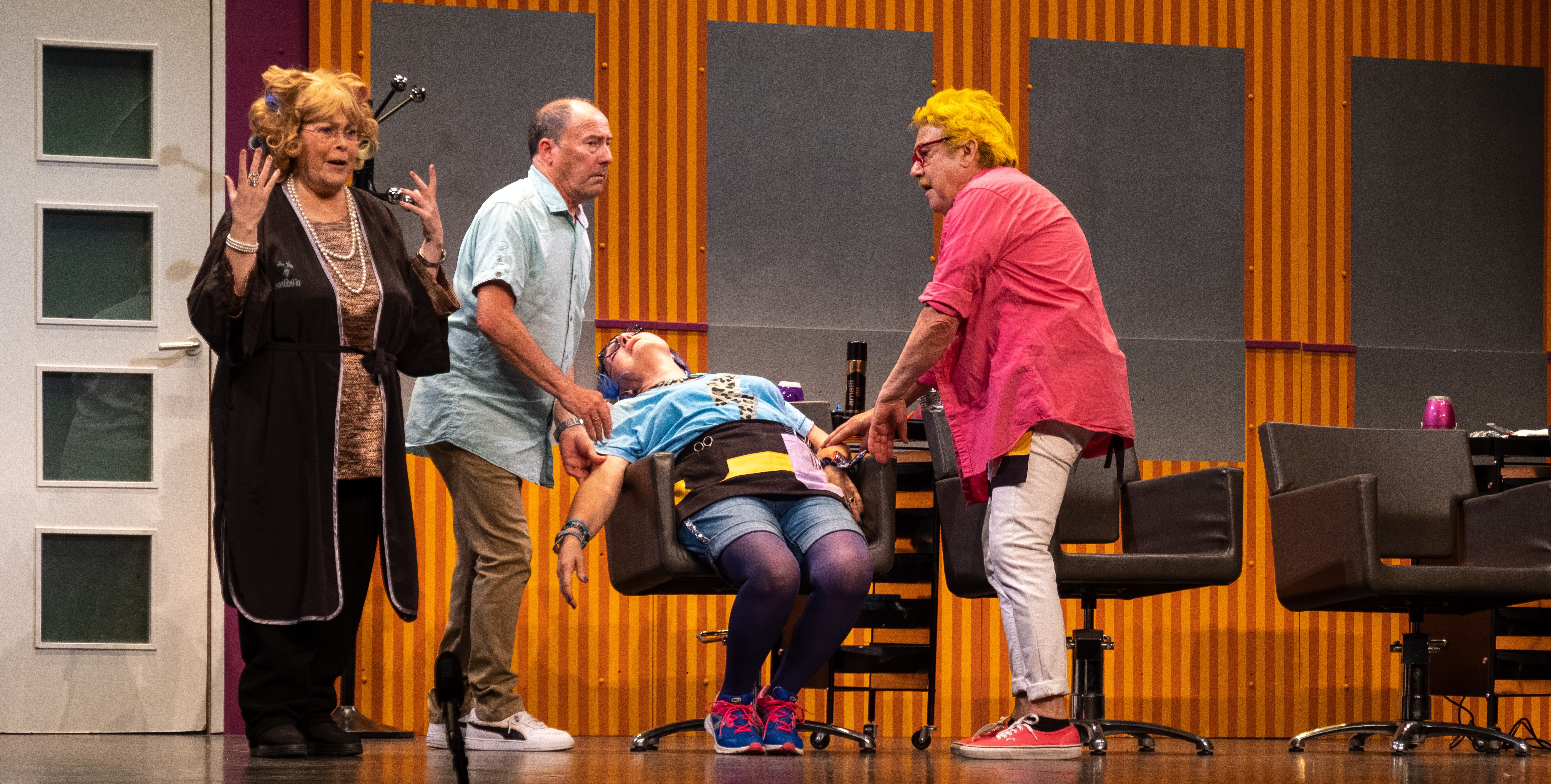 ¡Por los pelos! fue la decimoquinta obra de Eclipse Teatro y se estrenó en mayo de 2023 en el Ateneu Popular 9 Barris, y en la Parròquia de Sant Sebastià (Verdum). Fue una obra que empezamos a trabajar en 2018 y que, por motivos varios, nunca habíamos llegado a culminar. Acabó guardada en un cajón hasta que en 2022 decidimos retomar el proyecto y montar encima del escenario una peluquería, de la A a la Z. Un gran trabajo de escenografía y de guion en la que, una vez más, llenamos la sala de público orgullosos de formar parte de un grupo como Eclipse. ¡Esperamos que os guste!