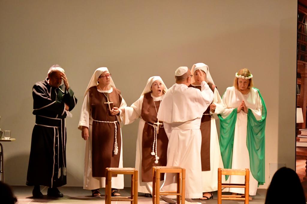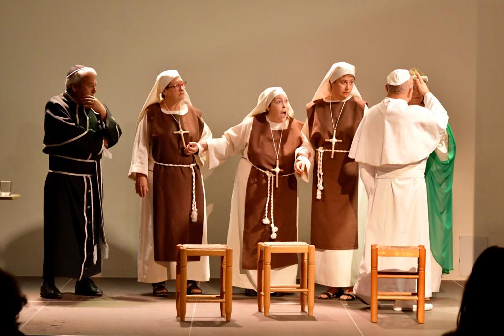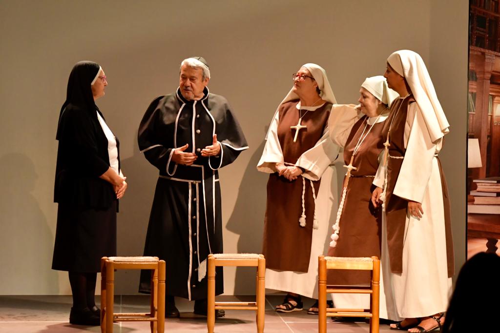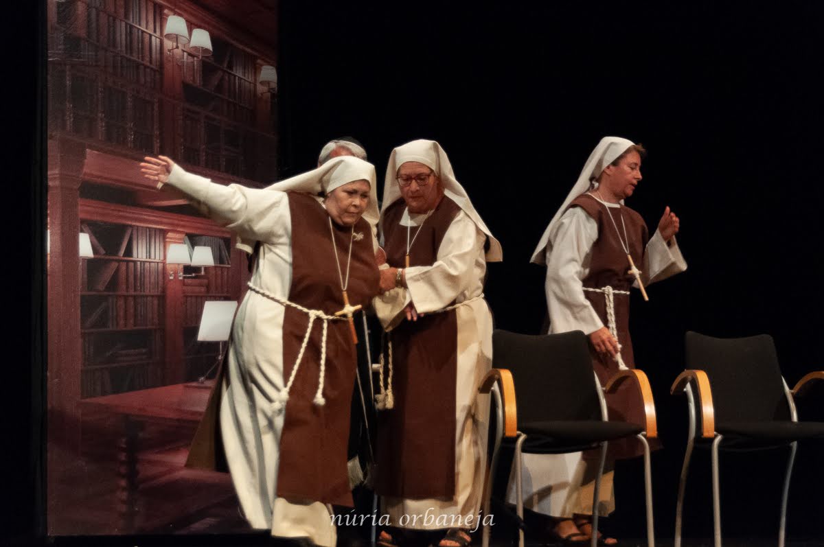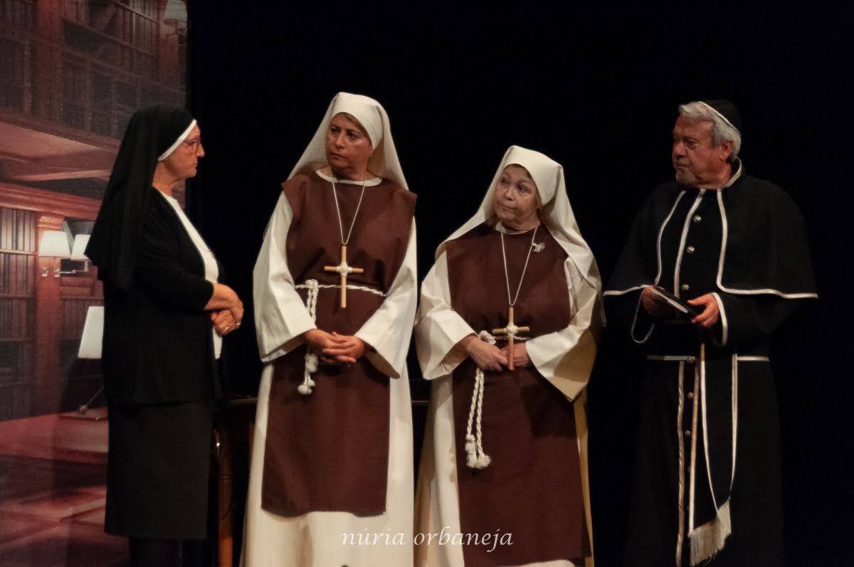 Ellas son el milagro fue la decimocuarta obra de Eclipse Teatro y se estrenó en 2022 en el Ateneu Popular Nou Barris i en el Espai 3 Ulls – IE Trinitat Nova. Desde La Buena Suerte, cuando celebramos el 10º aniversario del grupo 2018, no habíamos vuelto a estrenar una obra como tal. Entre una cosa y otra, y después la pandemia, Eclipse estuvo lantente durante 3-4 años. Pero eso había acabado y había llegado la hora de superar todas las adversidades y volver al escenario con la que fue la primera obra escrita por nosotros mismos. Nos pareció una genial oportunidad poder escribir una continuación a la obra de Jean-Pierre Martínez Milagro en el Convento de Santa María Juana, que estrenamos en el mismo teatro el año 2017. Una vez más, un gran trabajo de creación y escenificación, así como de vestuario y decorado. ¡Esperamos que os guste!