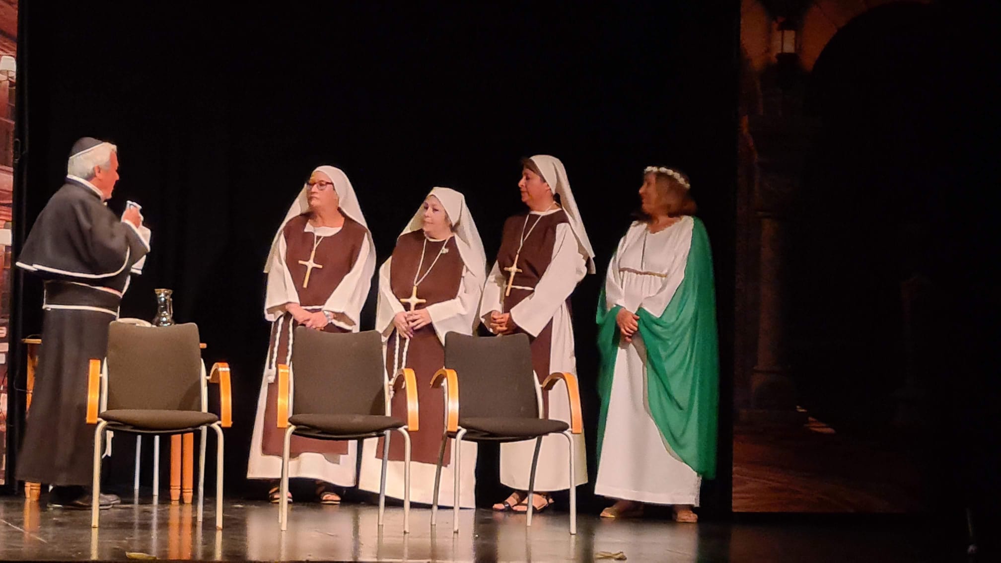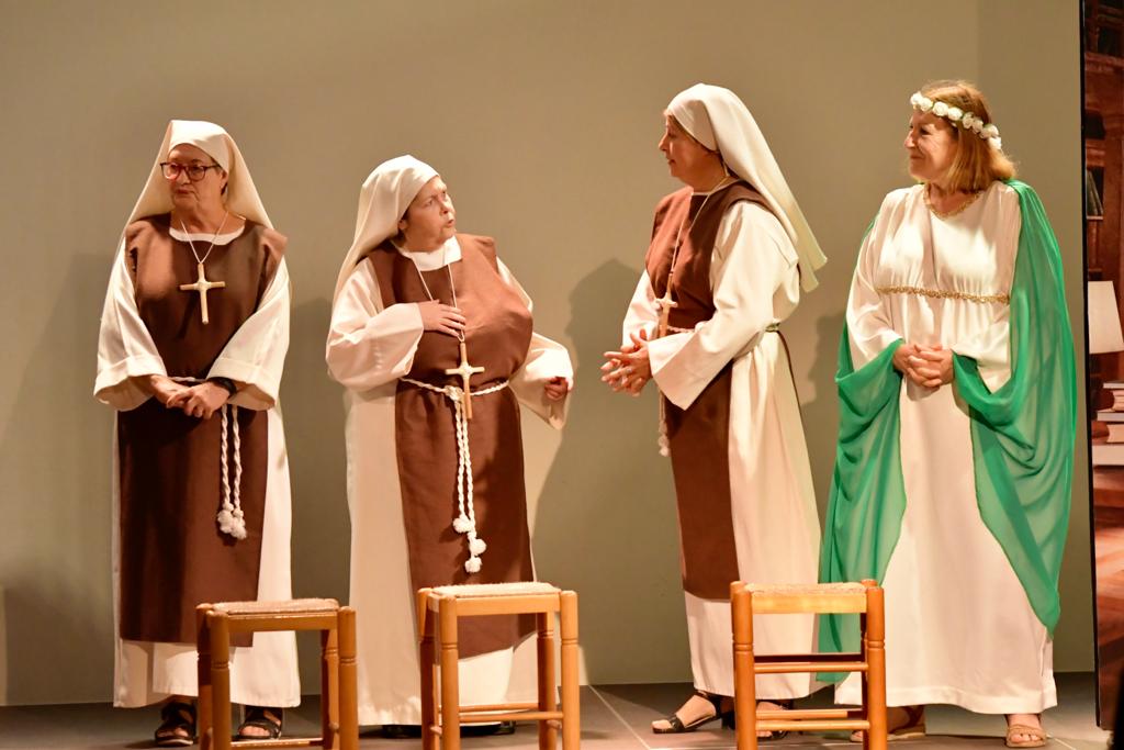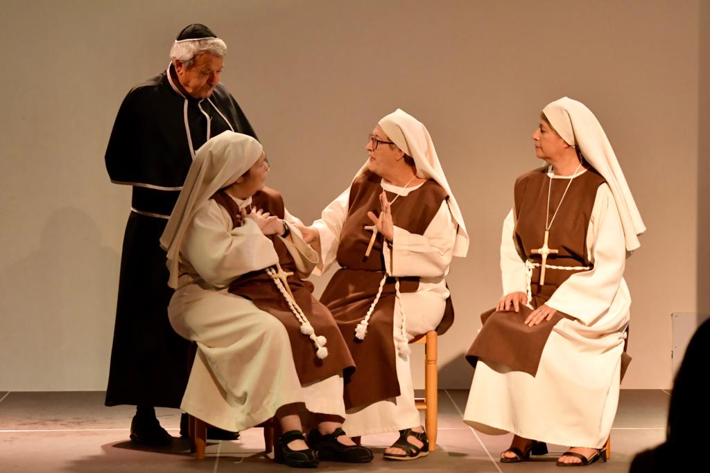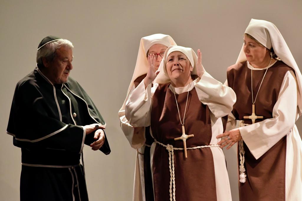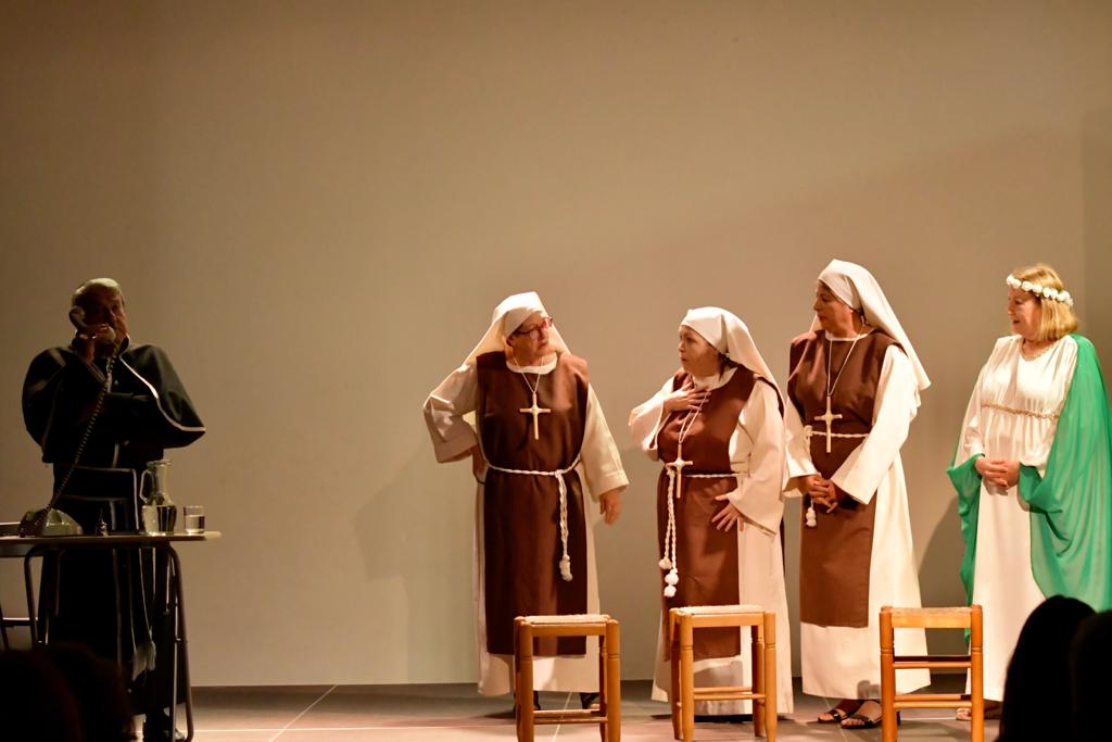 Ellas son el milagro fue la decimocuarta obra de Eclipse Teatro y se estrenó en 2022 en el Ateneu Popular Nou Barris i en el Espai 3 Ulls – IE Trinitat Nova. Desde La Buena Suerte, cuando celebramos el 10º aniversario del grupo 2018, no habíamos vuelto a estrenar una obra como tal. Entre una cosa y otra, y después la pandemia, Eclipse estuvo lantente durante 3-4 años. Pero eso había acabado y había llegado la hora de superar todas las adversidades y volver al escenario con la que fue la primera obra escrita por nosotros mismos. Nos pareció una genial oportunidad poder escribir una continuación a la obra de Jean-Pierre Martínez Milagro en el Convento de Santa María Juana, que estrenamos en el mismo teatro el año 2017. Una vez más, un gran trabajo de creación y escenificación, así como de vestuario y decorado. ¡Esperamos que os guste!