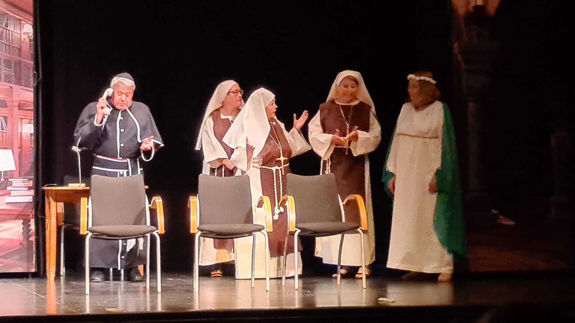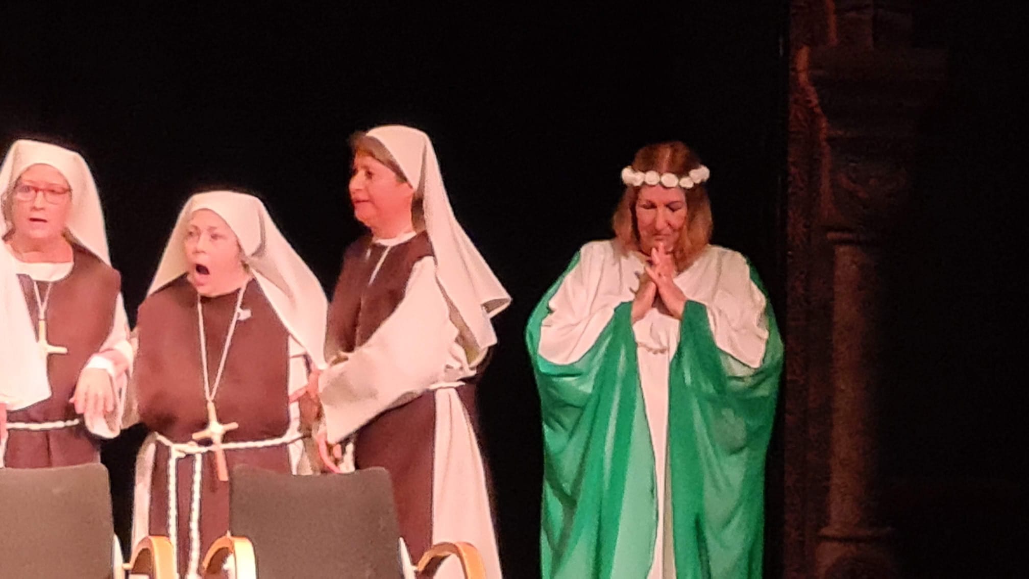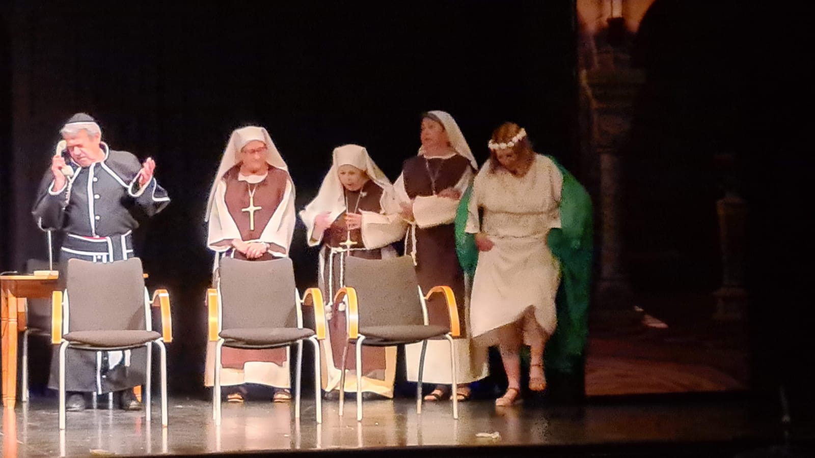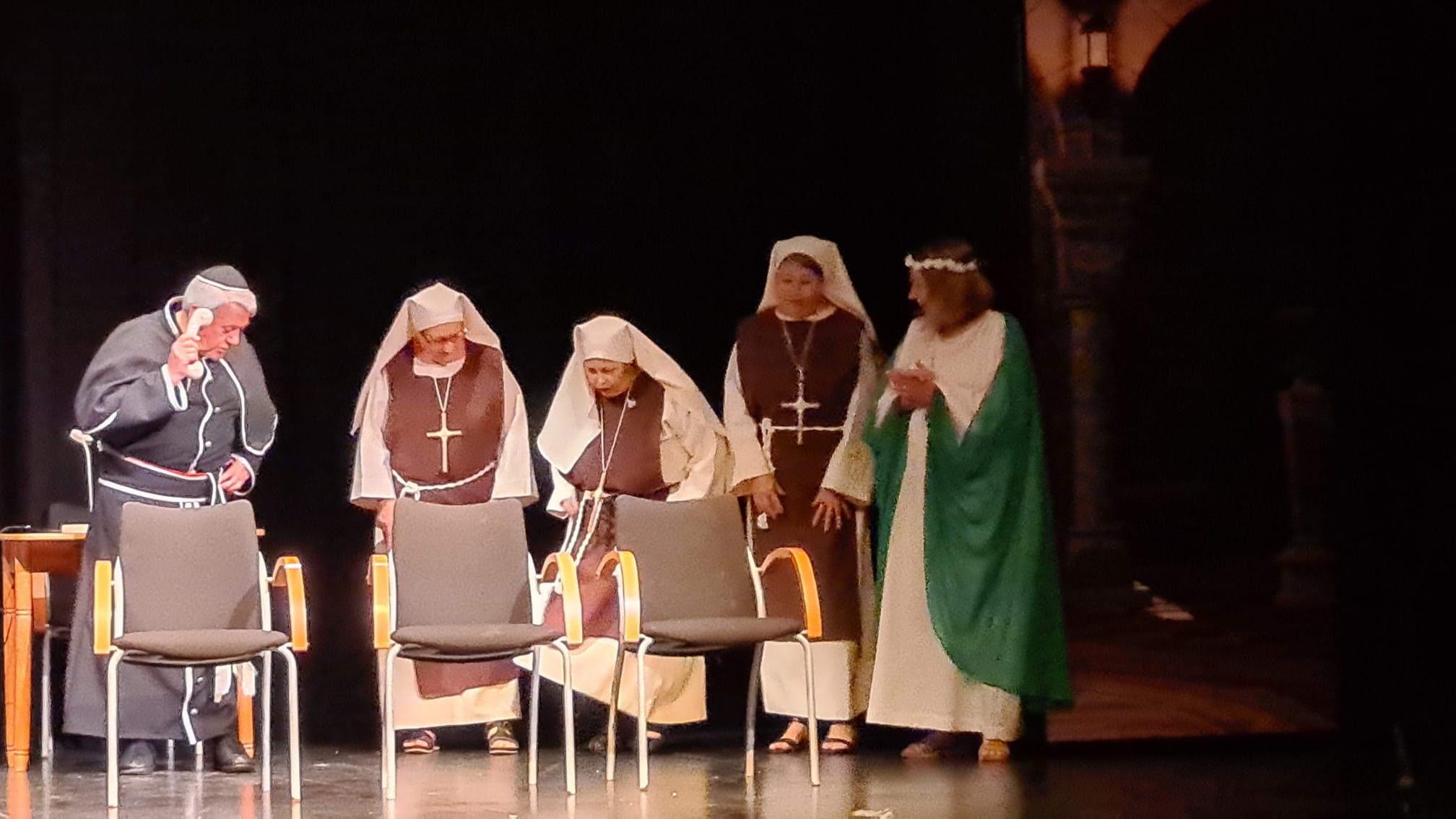 Ellas son el milagro fue la decimocuarta obra de Eclipse Teatro y se estrenó en 2022 en el Ateneu Popular Nou Barris i en el Espai 3 Ulls – IE Trinitat Nova. Desde La Buena Suerte, cuando celebramos el 10º aniversario del grupo 2018, no habíamos vuelto a estrenar una obra como tal. Entre una cosa y otra, y después la pandemia, Eclipse estuvo lantente durante 3-4 años. Pero eso había acabado y había llegado la hora de superar todas las adversidades y volver al escenario con la que fue la primera obra escrita por nosotros mismos. Nos pareció una genial oportunidad poder escribir una continuación a la obra de Jean-Pierre Martínez Milagro en el Convento de Santa María Juana, que estrenamos en el mismo teatro el año 2017. Una vez más, un gran trabajo de creación y escenificación, así como de vestuario y decorado. ¡Esperamos que os guste!