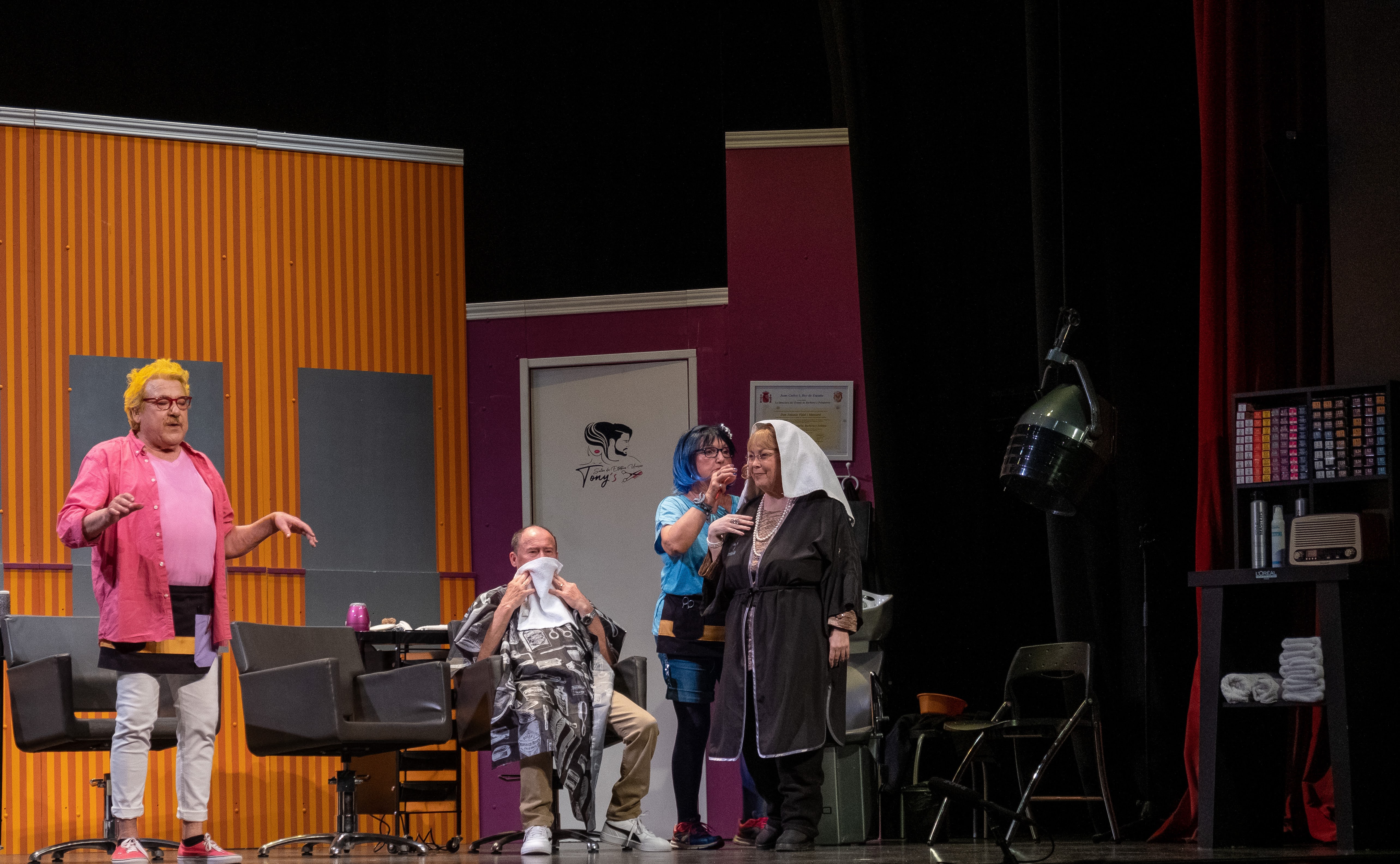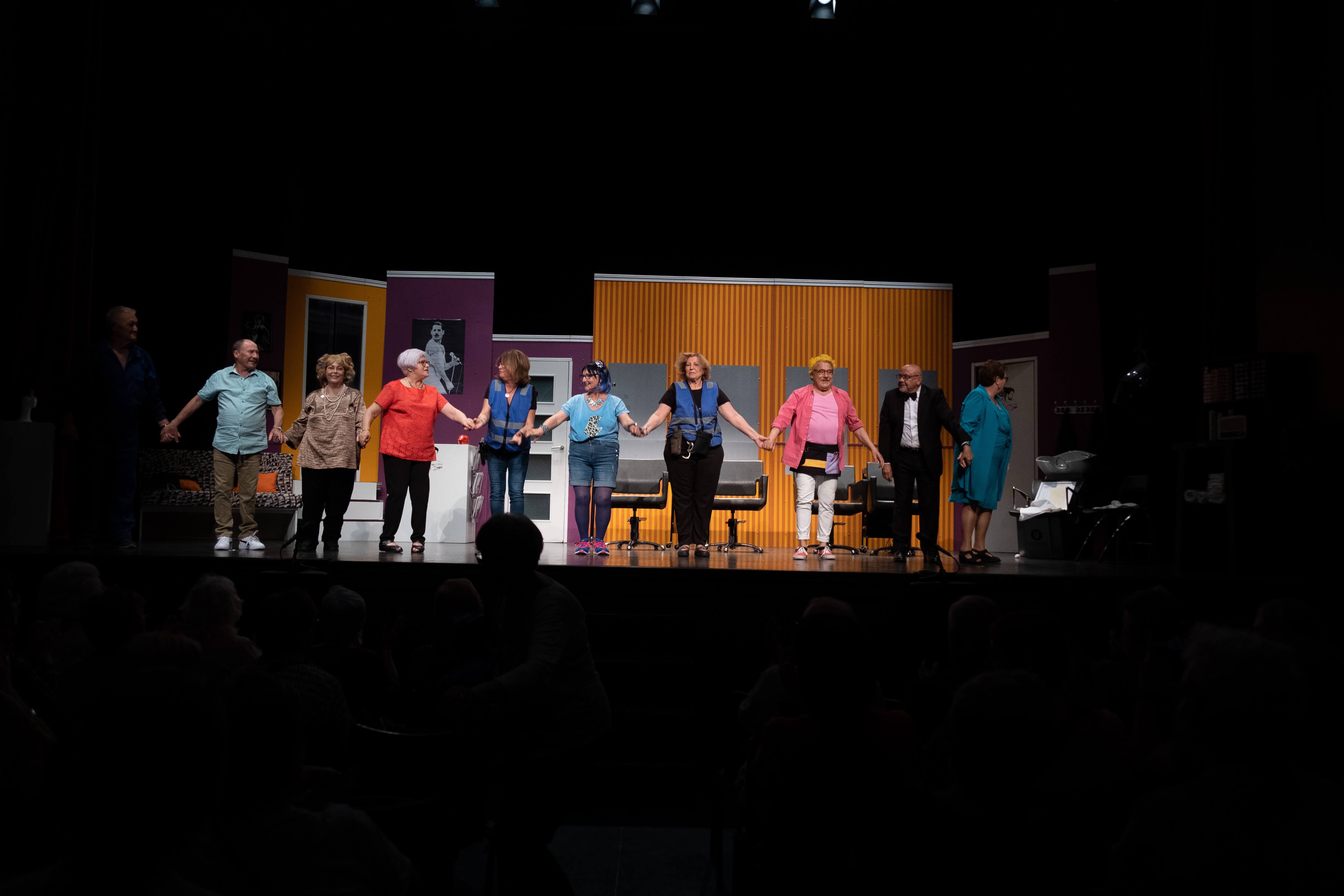 ¡Por los pelos! fue la decimoquinta obra de Eclipse Teatro y se estrenó en mayo de 2023 en el Ateneu Popular 9 Barris, y en la Parròquia de Sant Sebastià (Verdum). Fue una obra que empezamos a trabajar en 2018 y que, por motivos varios, nunca habíamos llegado a culminar. Acabó guardada en un cajón hasta que en 2022 decidimos retomar el proyecto y montar encima del escenario una peluquería, de la A a la Z. Un gran trabajo de escenografía y de guion en la que, una vez más, llenamos la sala de público orgullosos de formar parte de un grupo como Eclipse. ¡Esperamos que os guste!